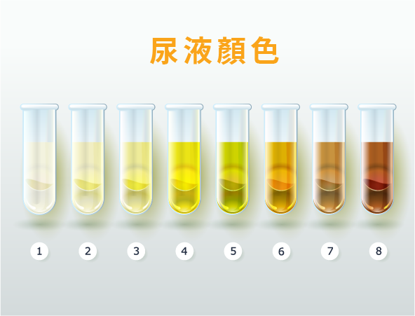- 淺黃尿液:顏色1-3是最理想的顏色,保持目前的喝水習慣即可