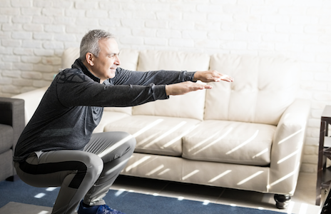 - Quadriceps and Core: To start in standing position then lower down until the thighs are parallel to the floor. If you can go lower, then do so. Raise back up to standing position (See photo).