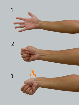 - Bend the thumb inward, wrap the thumb with the other 4 fingers, and make a fist.