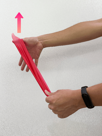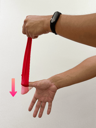 - Use the muscle band to wrap the thumb, straighten the thumb downward, hold for 5-10 seconds each time, repeat 20 to 30 times